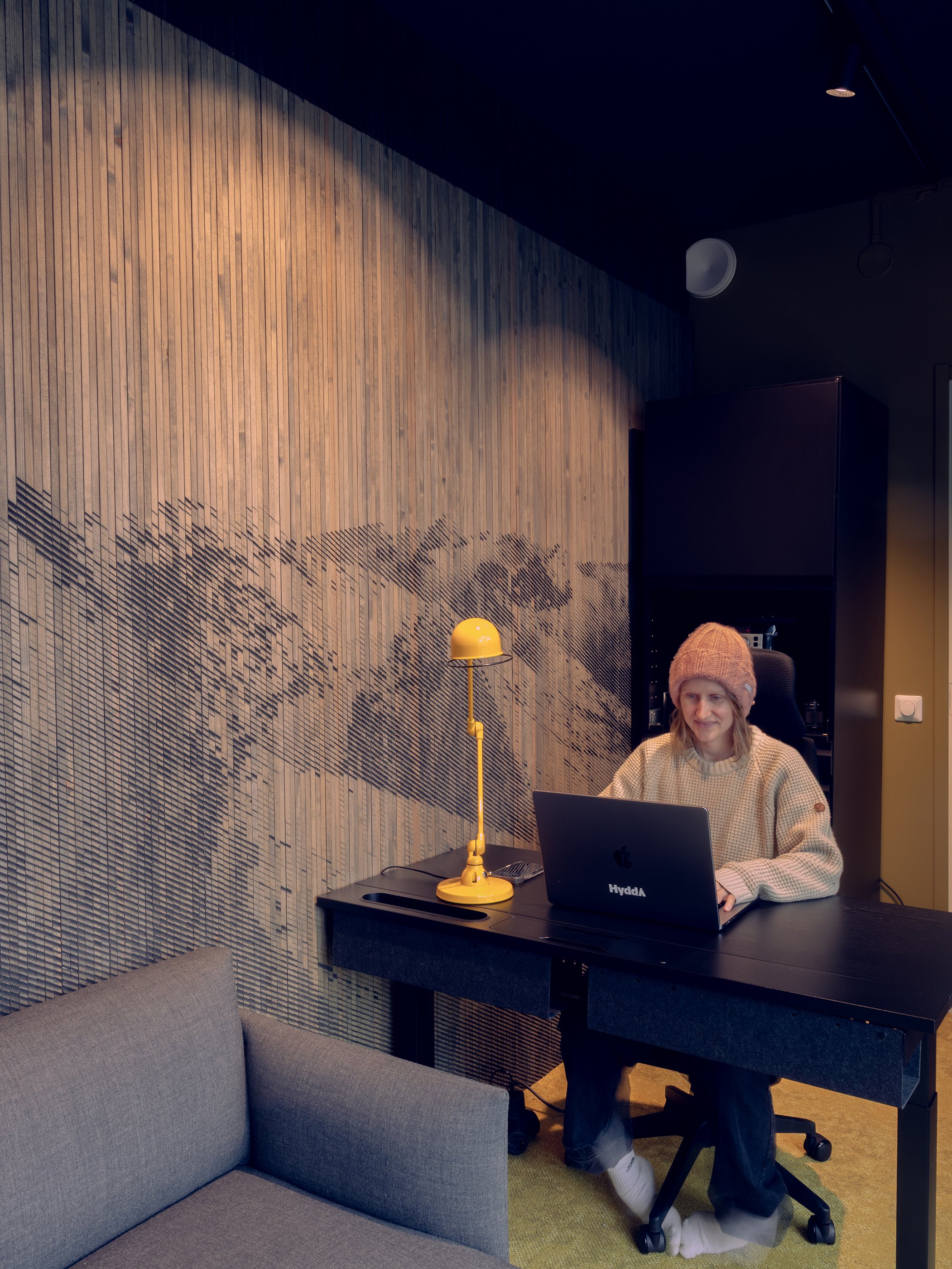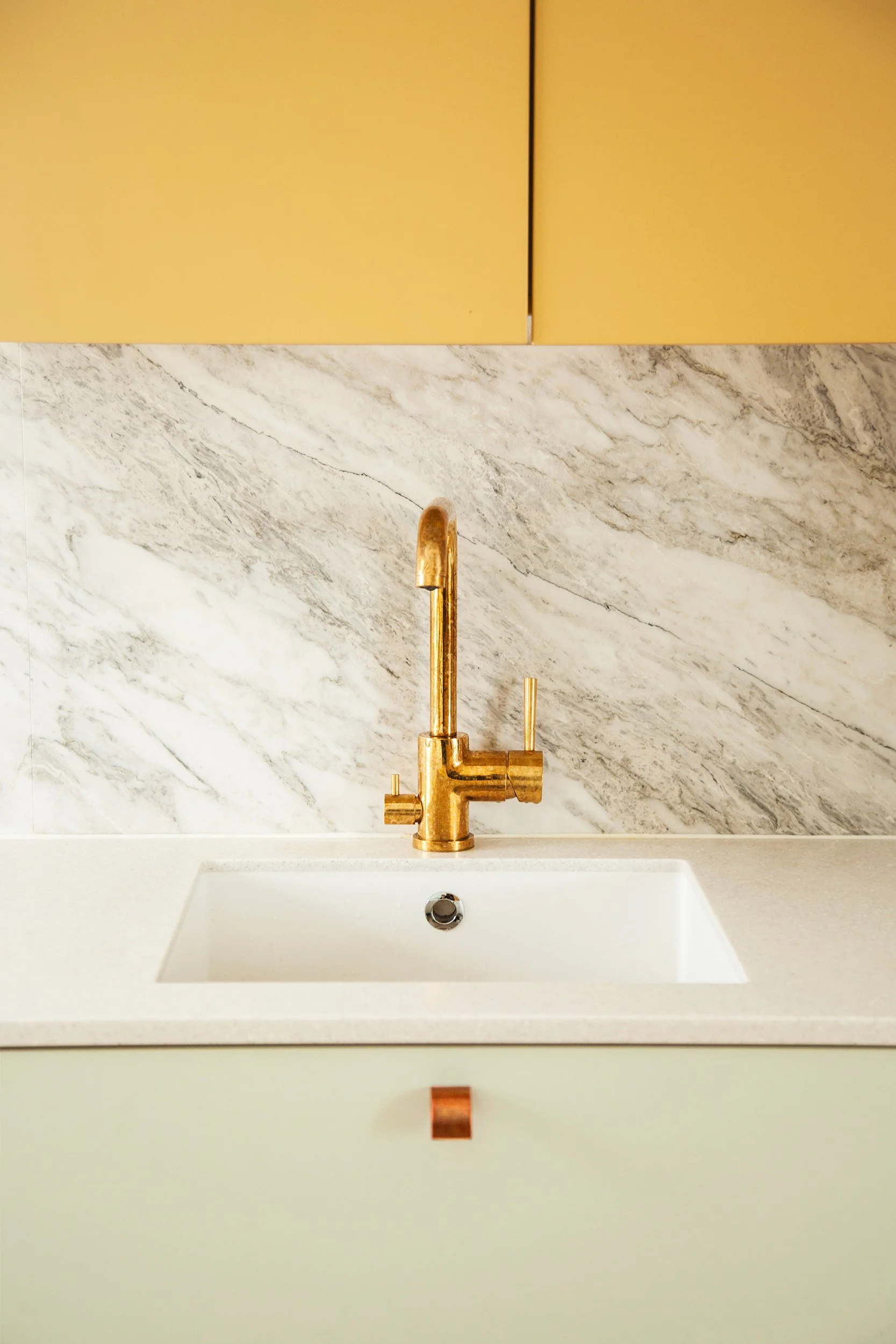 A palette of warm yellow, muted peach and soft green brings a subtle retro character to the space — gently referencing the building’s 1960s origins while remaining calm and timeless.