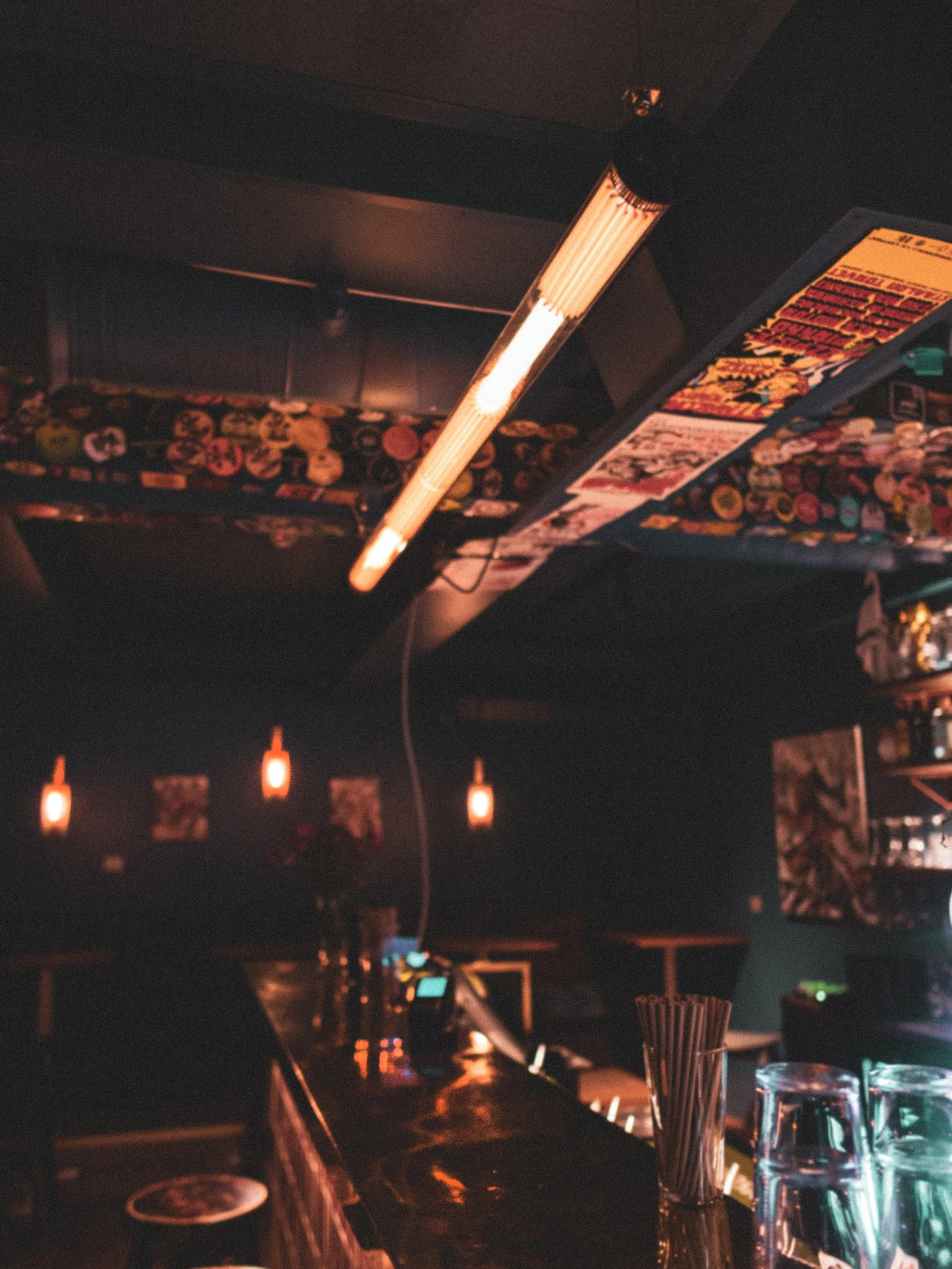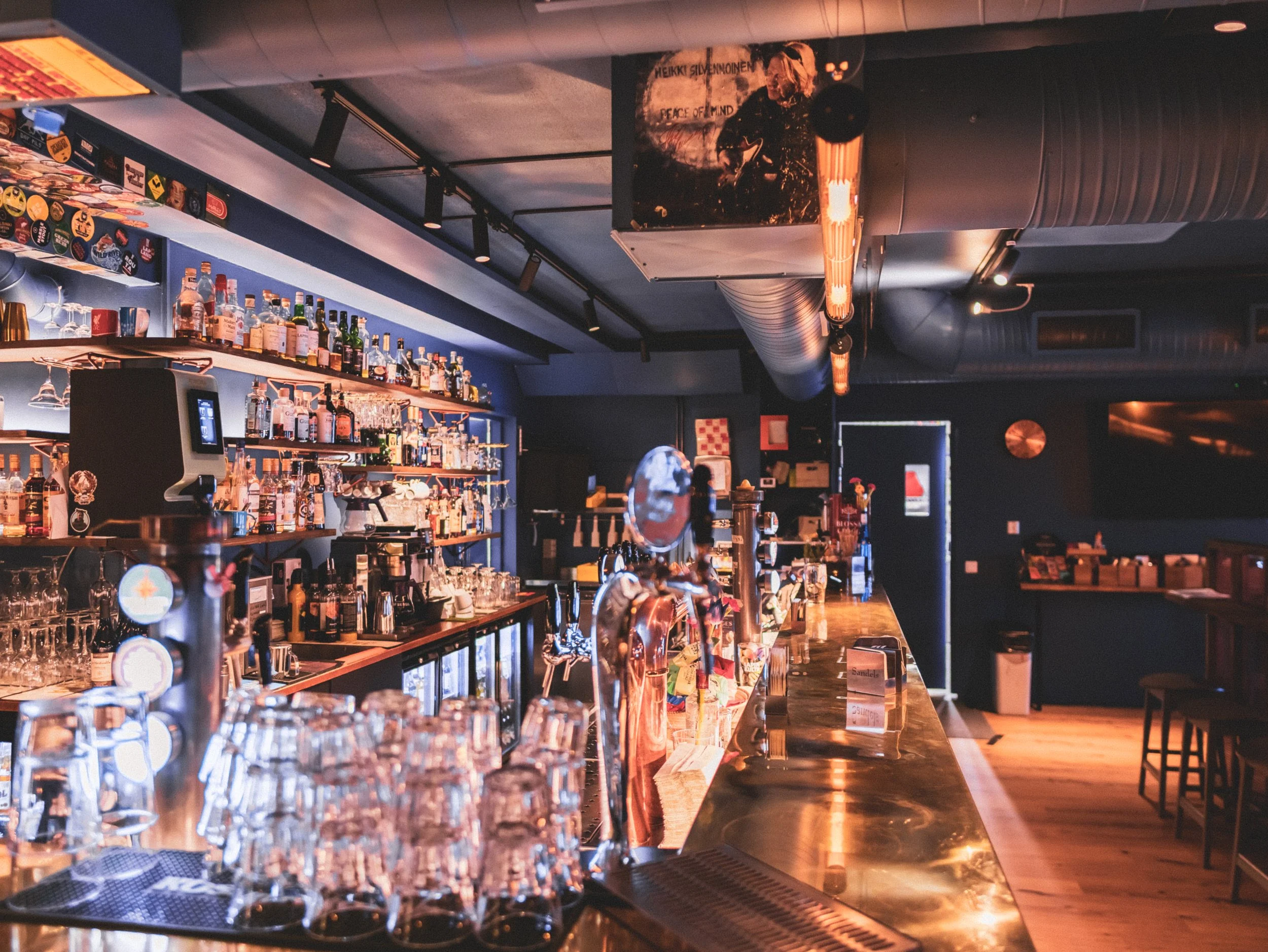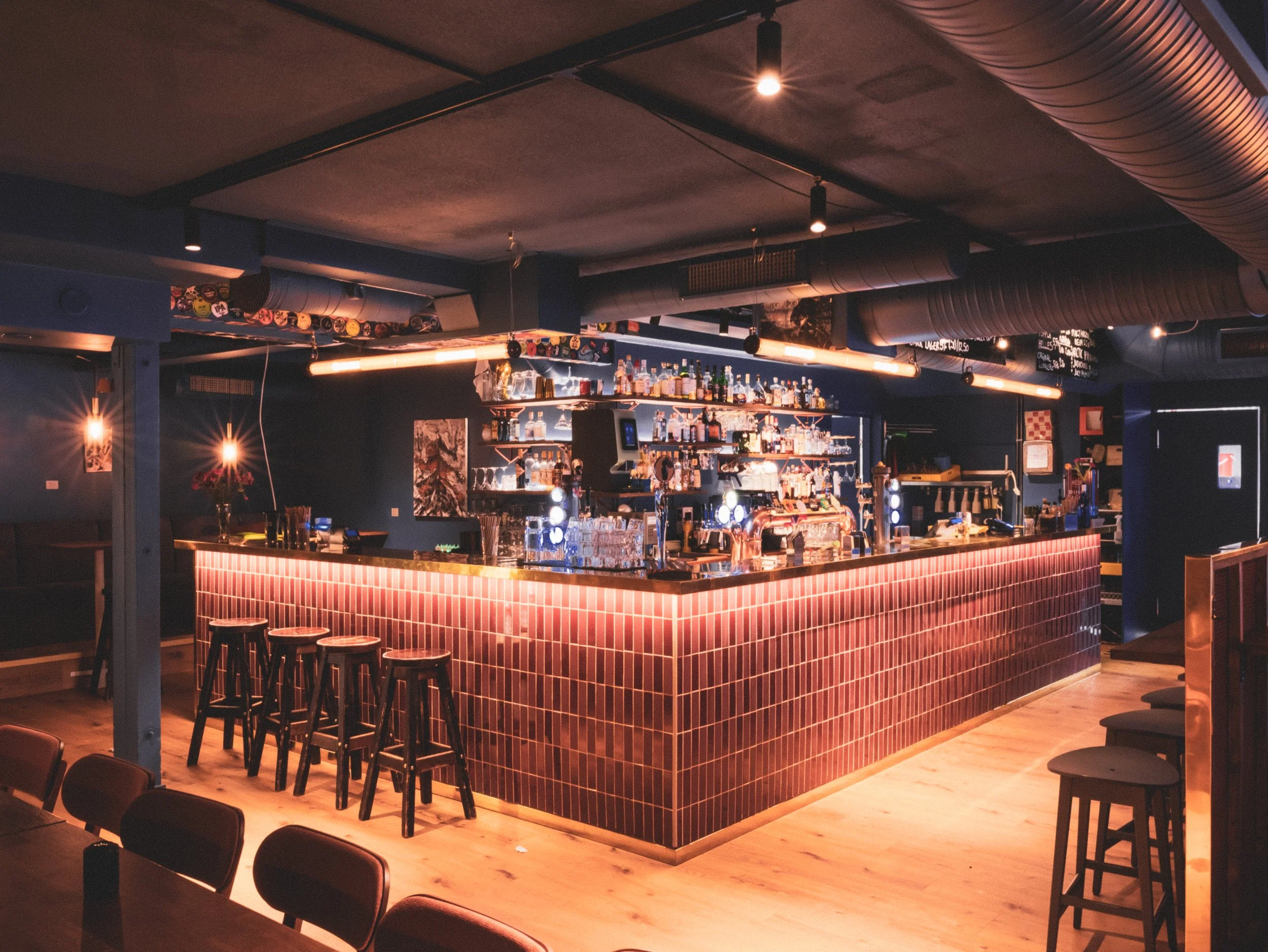 The extension created additional seating and allowed the interior layout to be reorganised to improve circulation and service. The bar was relocated and redesigned as an L-shaped counter that responds to the direction of the new entrance, creating a clearer focal point and improving the flow between arrival, bar service and seating areas.